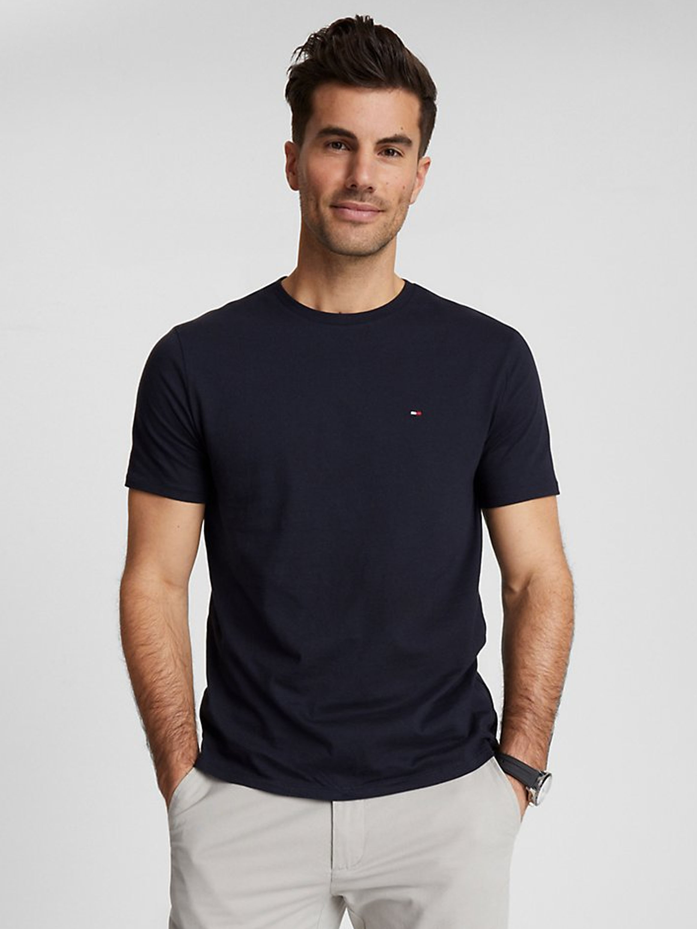 Llevate un pack de 5 remeras básicas Tommy Hilfiger slim fit a un precio bomba y armá tu placard con estilo todos los días.